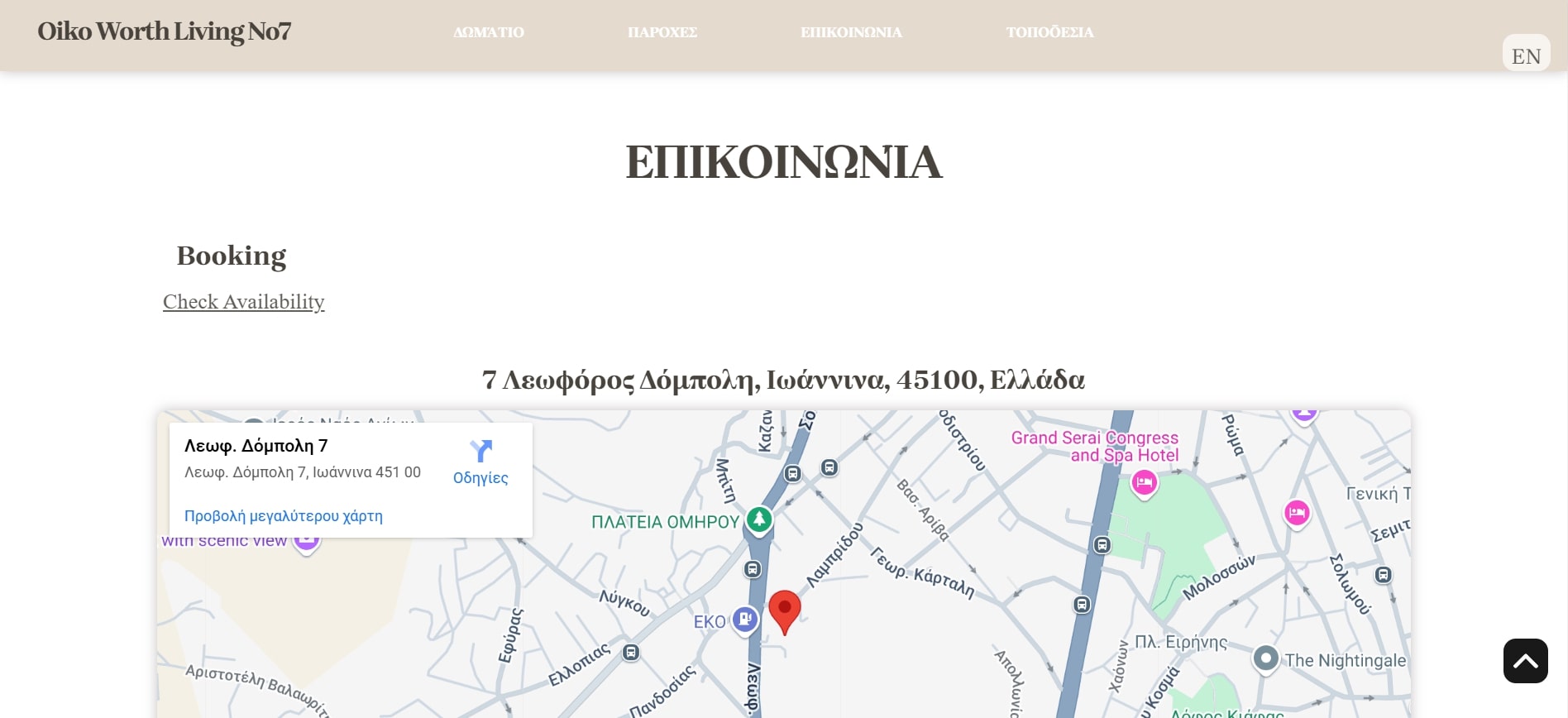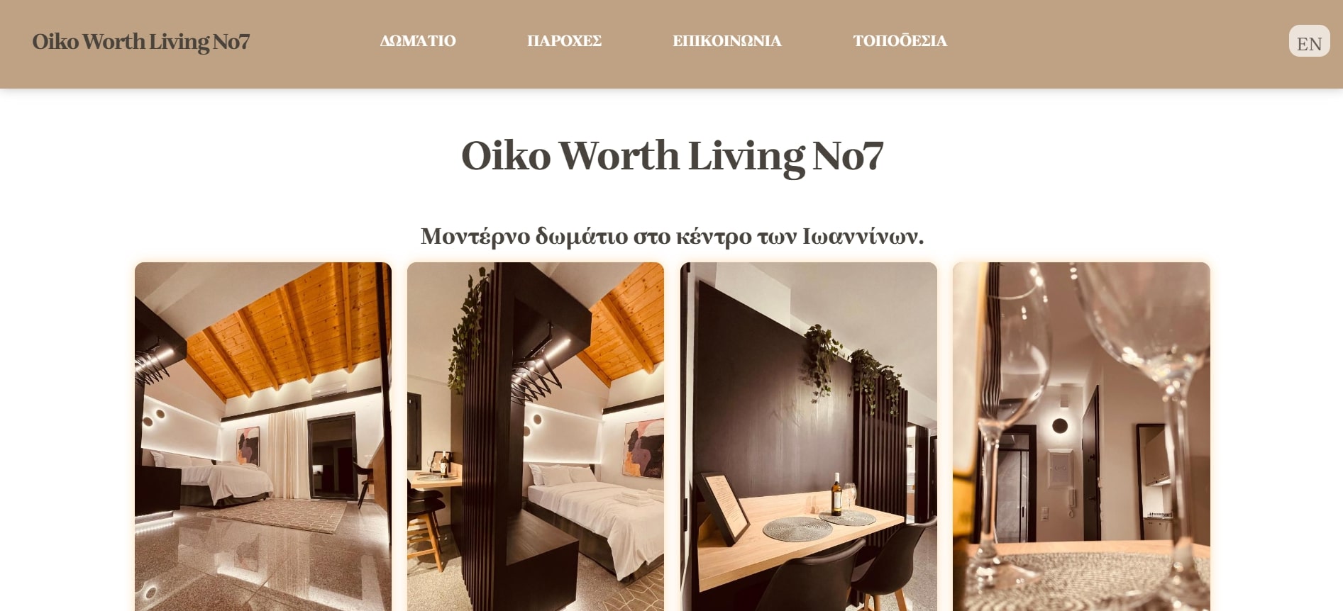 Minimal website providing information about the "Oiko Worth Living" apartment in Ioannina, Greece.